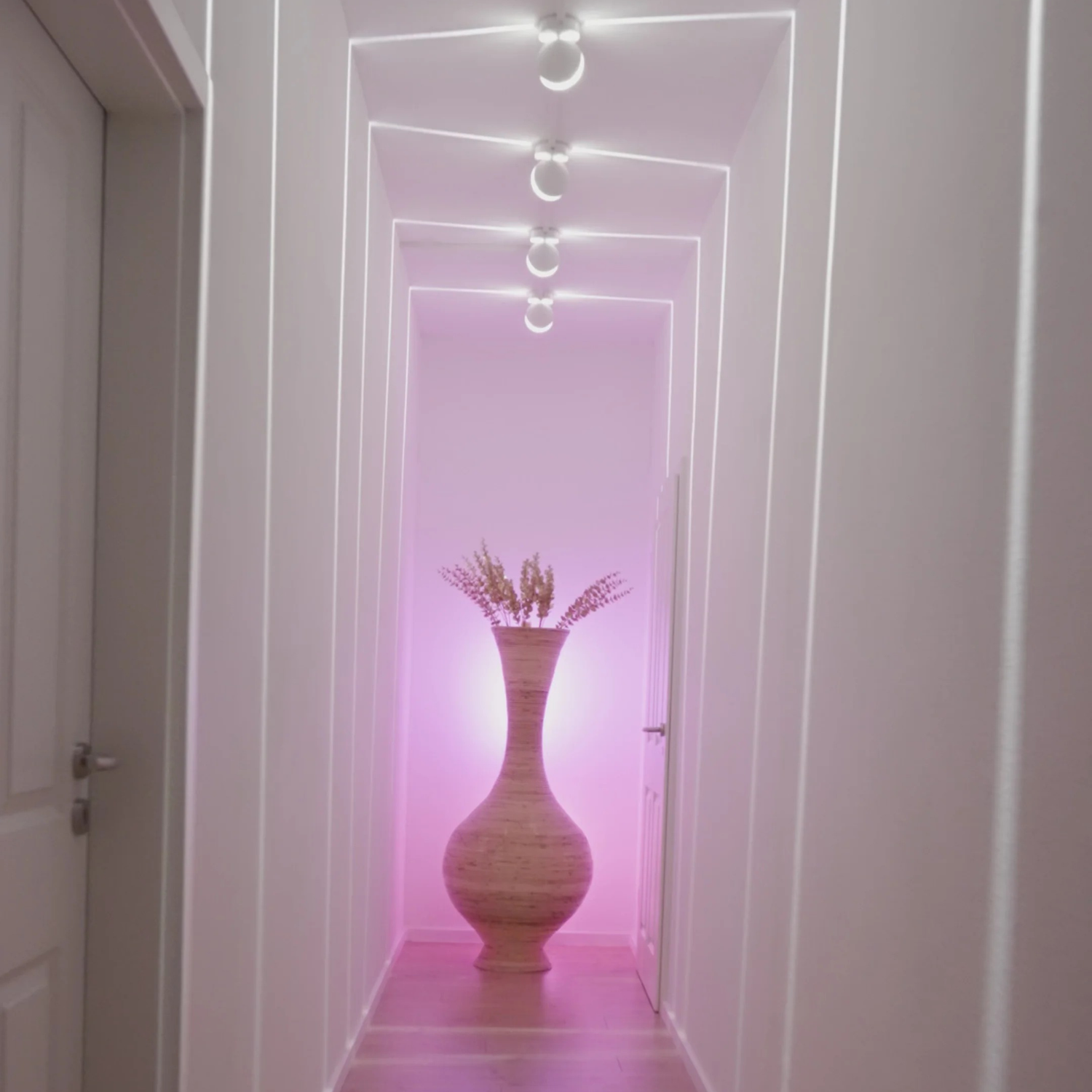 Die FLUXA 360 schafft klare Linien, Tiefe und Ruhe. Ihr minimalistisches Lichtkonzept verleiht jedem Raum eine moderne, fast skulpturale Wirkung – schlicht, präzise und zeitlos elegant.